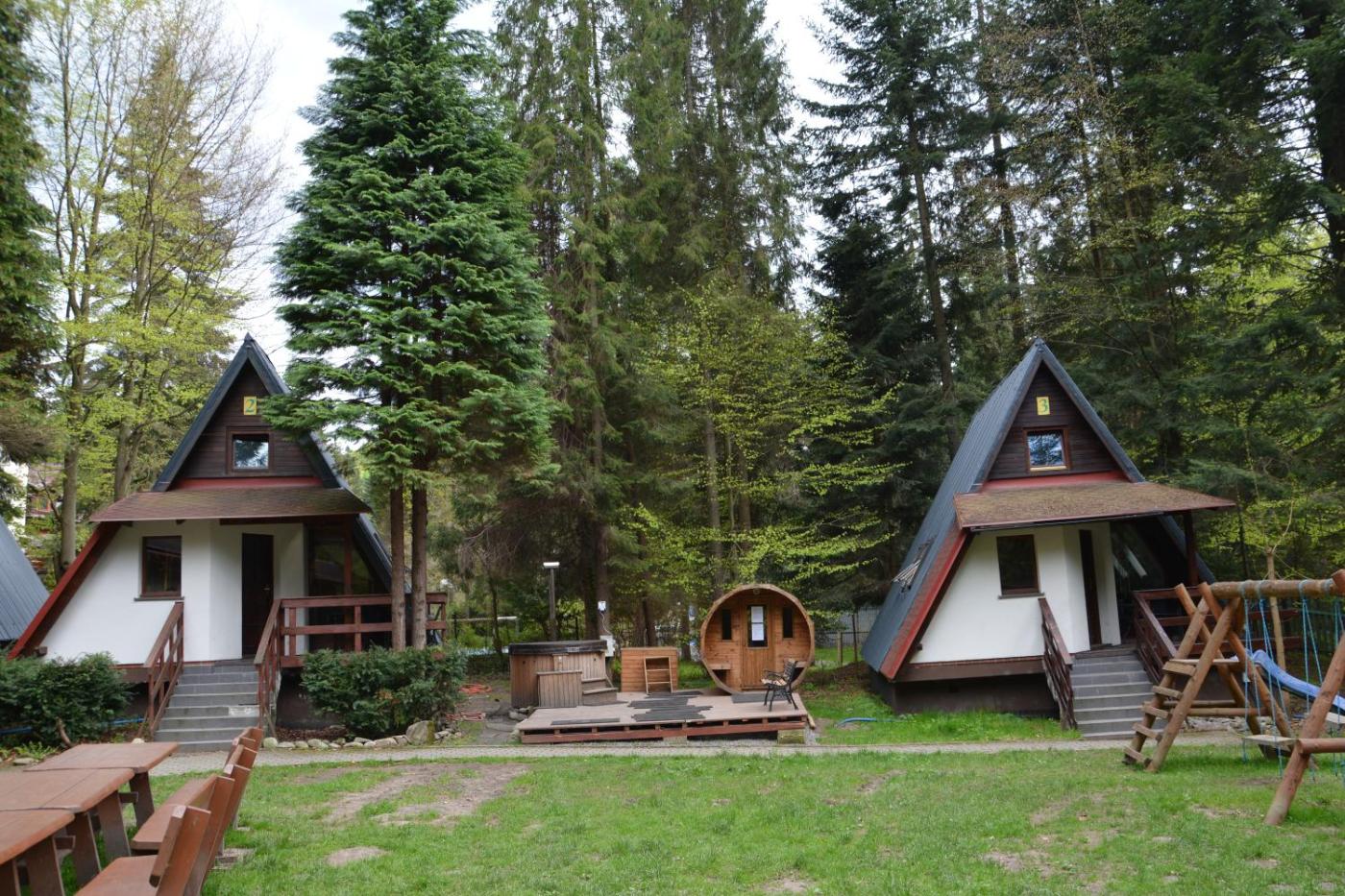 Domek z 2 sypialniami. Featuring a private entrance, this chalet also comprises 1 living room, 2 separate bedrooms and 1 bathroom with a walk-in shower. Guests will find a stovetop, a refrigerator, kitchenware and a microwave in the fully equipped kitchen. The chalet also provides guests with a barbecue. The chalet provides a seating area, a dining area, a wardrobe as well as a terrace with mountain views. The unit offers 5 beds. Domek - 5 osobowy. Powierzchnia pokoju ok.: 40 mkw. ;