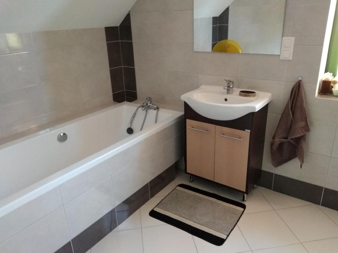 Dom z 6 sypialniami. The sauna and fireplace are the special features of this holiday home. This spacious holiday home comes with 1 living room, 6 separate bedrooms and 3 bathrooms with a walk-in shower and free toiletries. Guests will find a stovetop, a refrigerator, a dishwasher and kitchenware in the kitchen. The holiday home also includes a barbecue. Boasting a terrace with garden views, this holiday home also features a washing machine and a flat-screen TV. The unit has 9 beds. Dom wakacyjny - 14 osobowy. Powierzchnia pokoju ok.: 230 mkw.